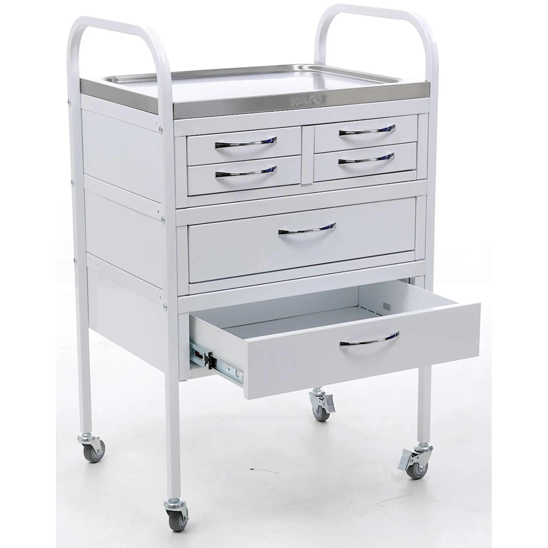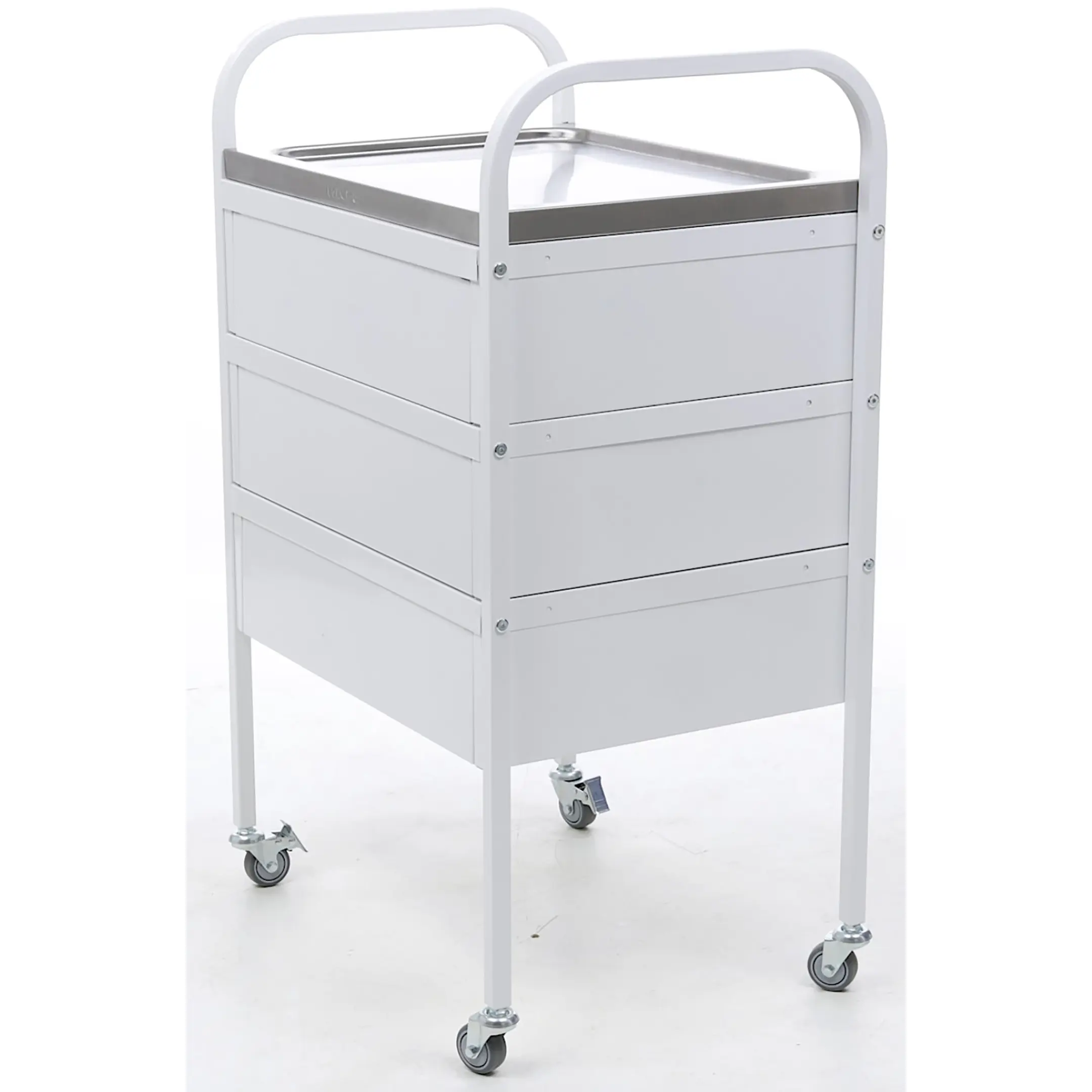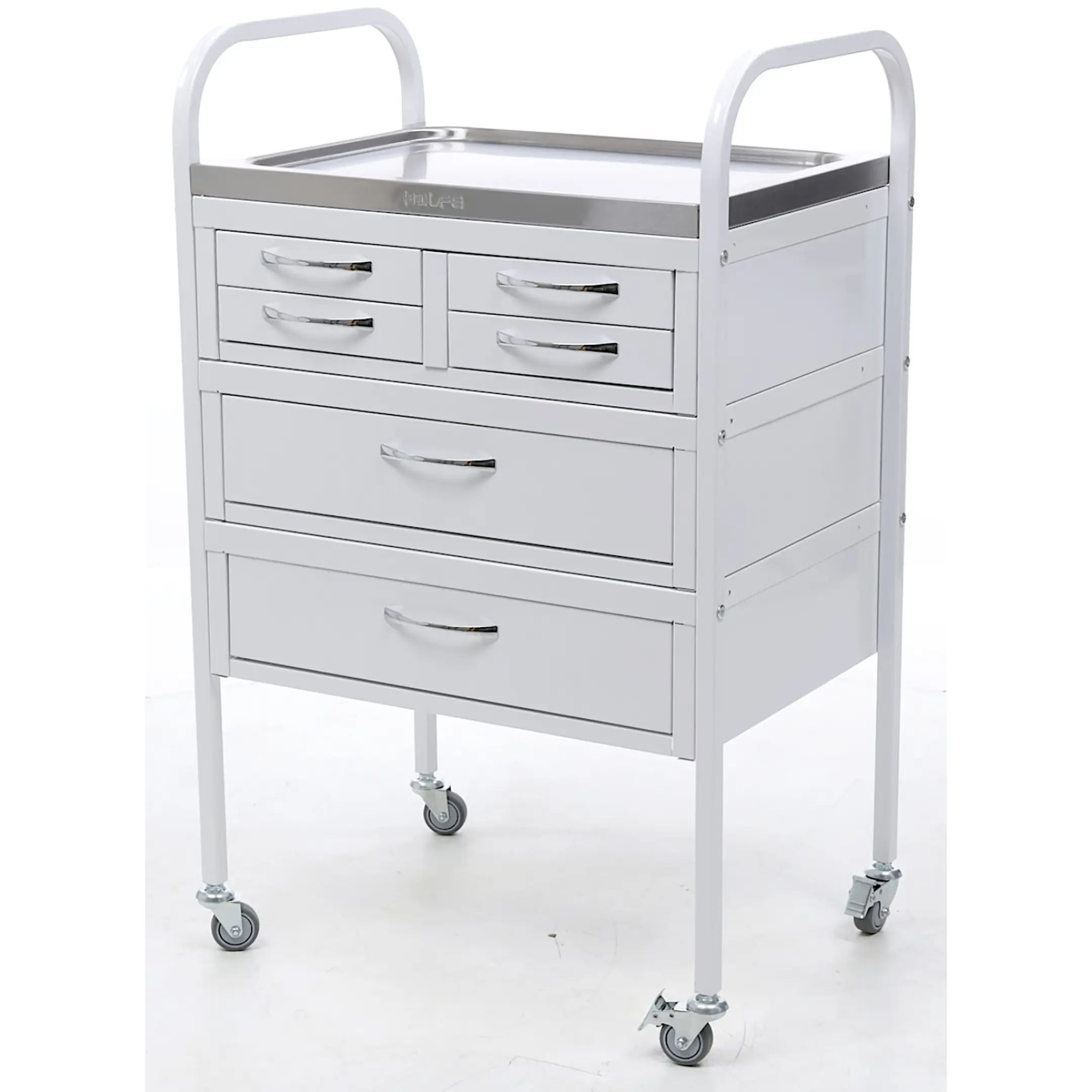 • столик манипуляционный имеет 4 колеса из не маркой серой резины D= 50 мм, два из которых снабжены тормозом;