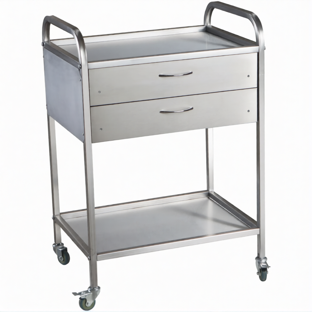 Стол медицинский инструментальный СМИ-02-02 (полки металл, колёса пластик)