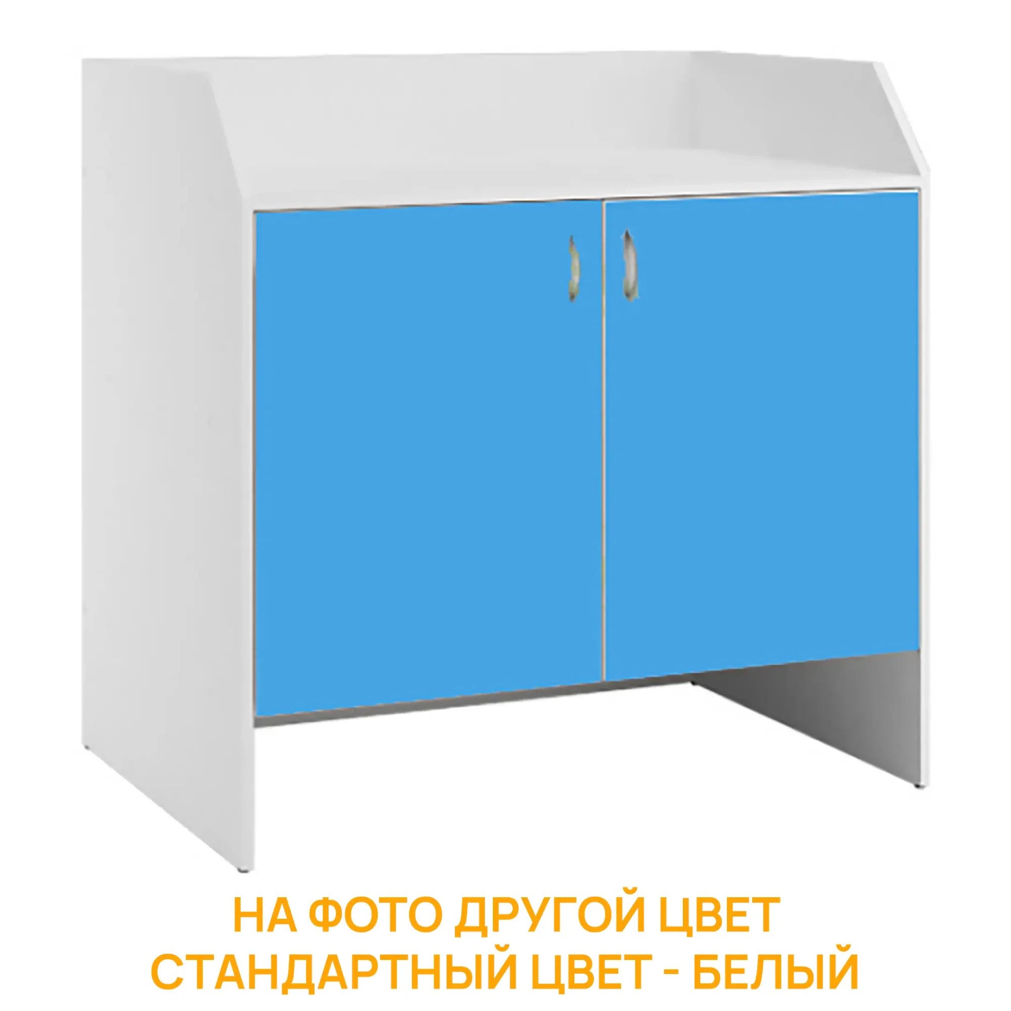 - Функциональная конструкция — закрытое отделение под столешницей с двумя дверками и хромированными ручками, внутри находится полка для удобного хранения необходимых инструментов и принадлежностей.
