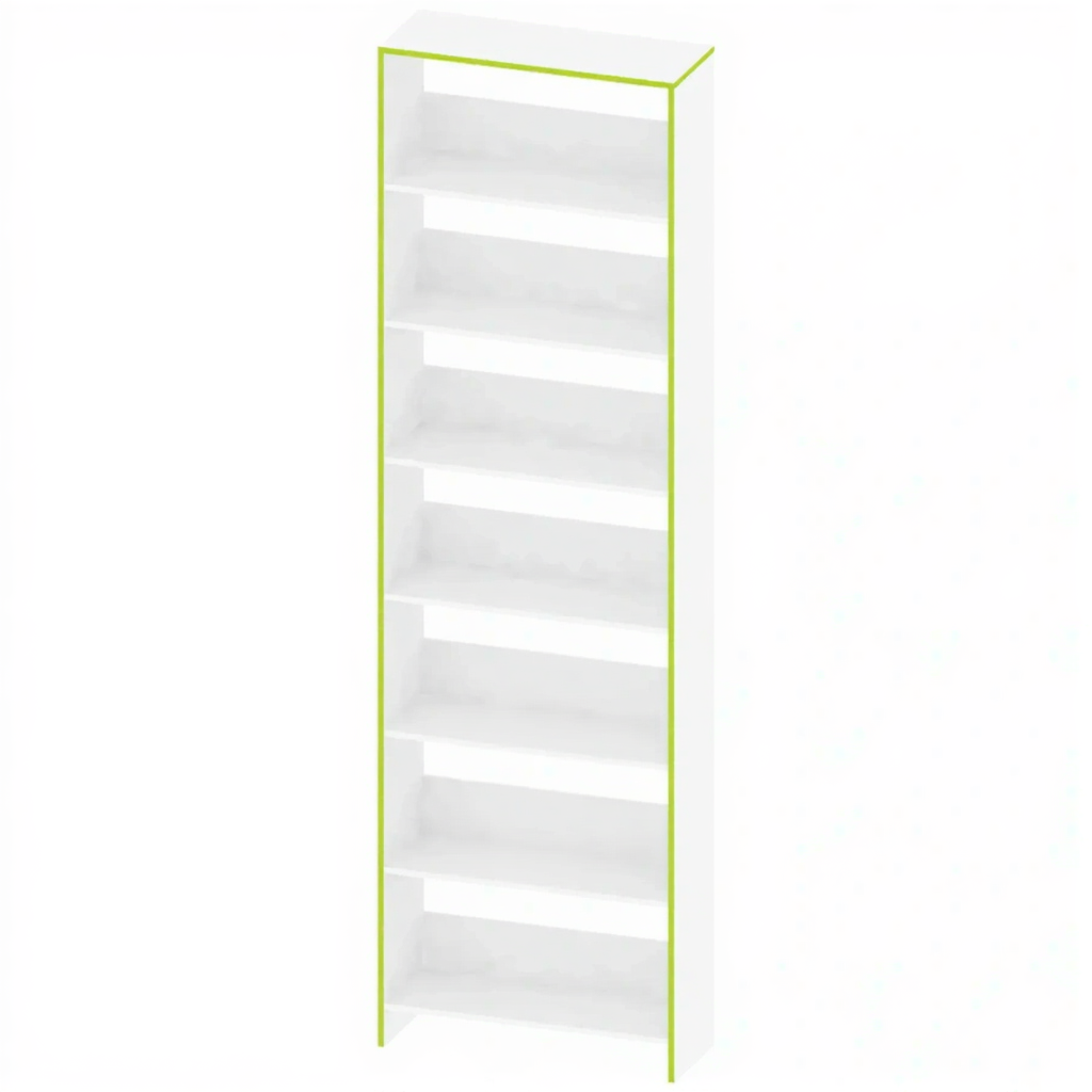 - Максимальная компактность — минимальные габариты позволяют разместить стеллаж в самых узких местах: в прихожей, между мебелью, в углу комнаты или у изголовья кровати, практически не занимая полезной площади.