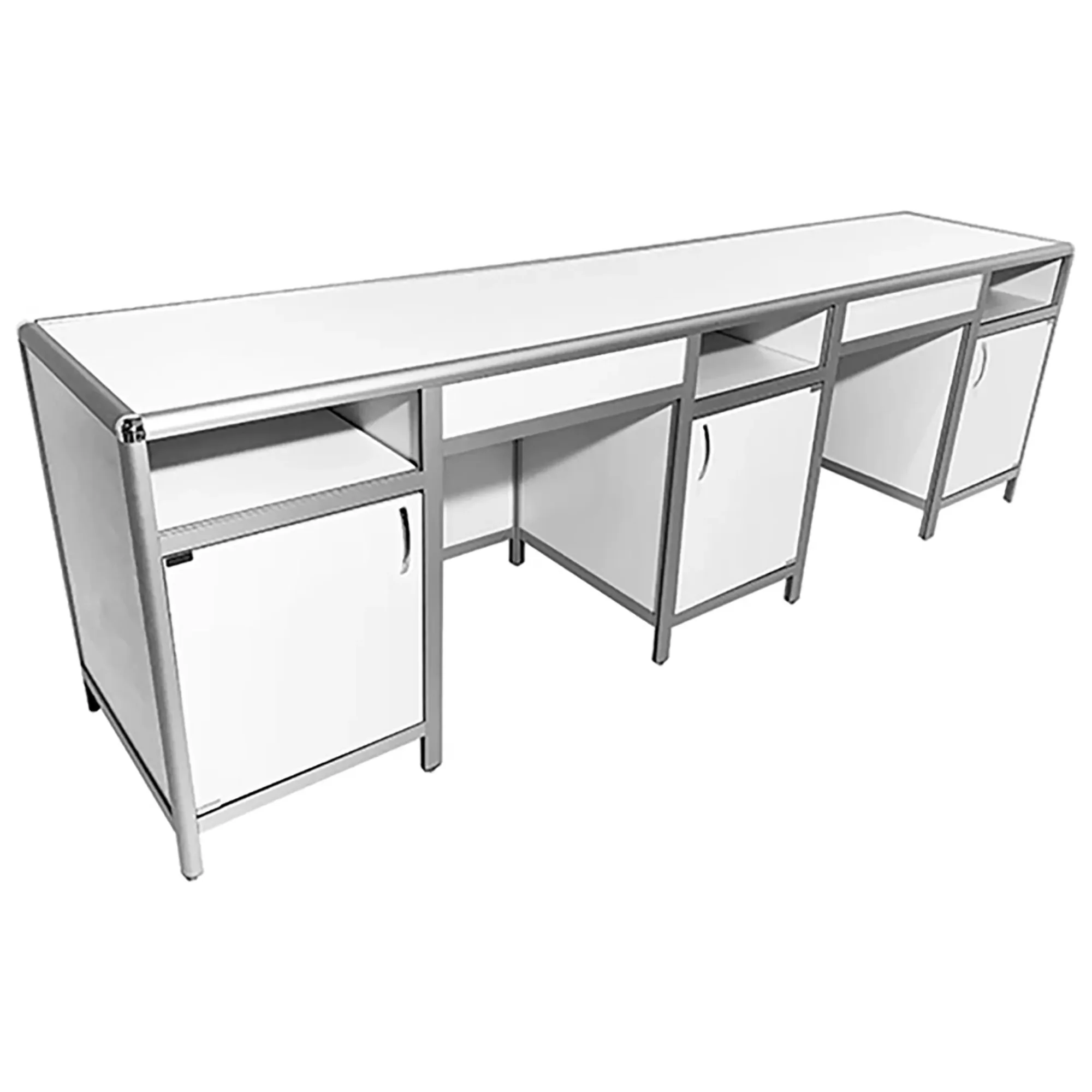 Стол лабораторный MED 10.012al (белый) представляет собой идеальное решение для создания эффективного и организованного рабочего пространства сотрудников лабораторий и медицинских учреждений. Модель оснащена тремя тумбами, каждая с верхней открытой нишей, отделением с распашной дверкой и полкой. Каркас выполнен из алюминиевого профиля, столешница из ЛДСП толщиной 16 мм.