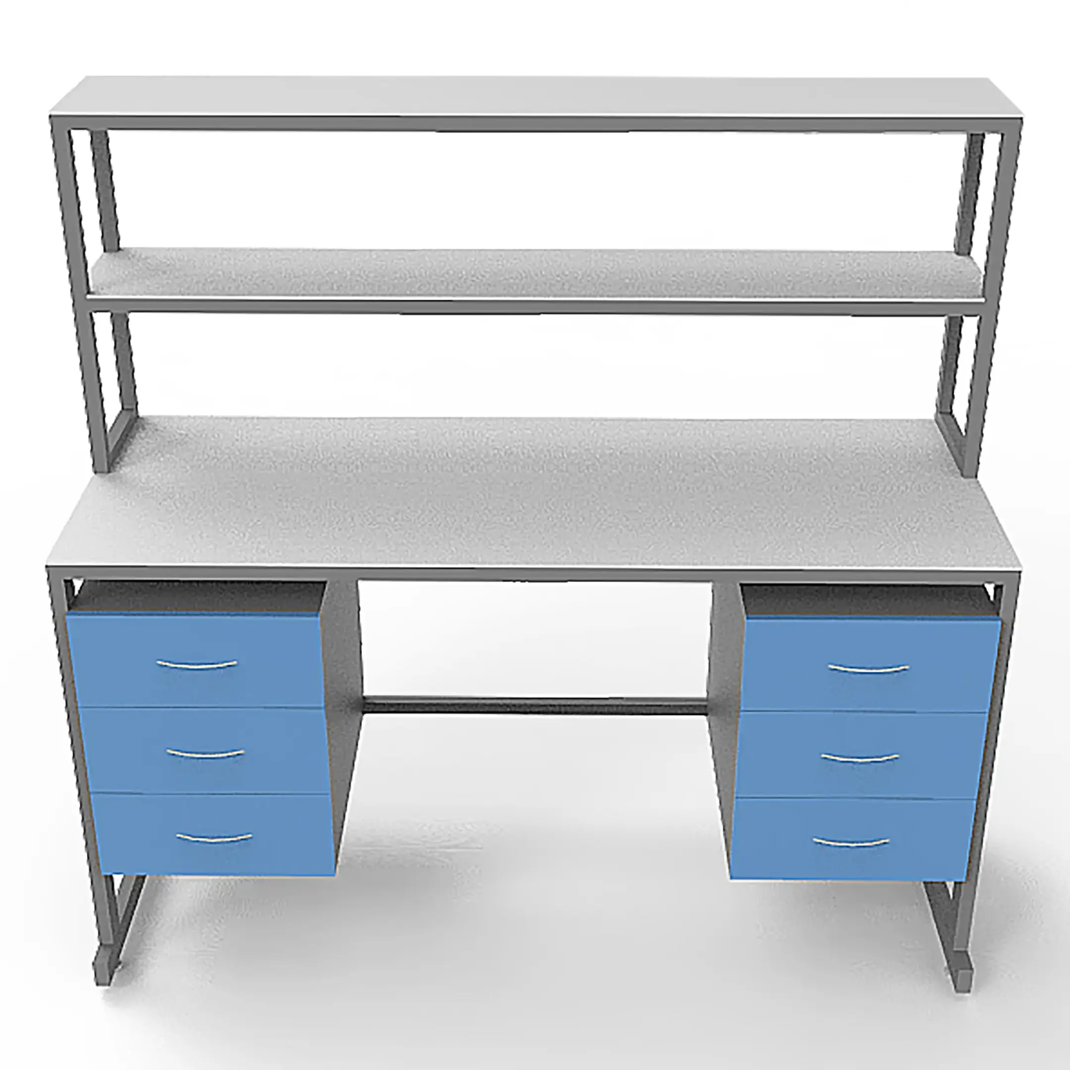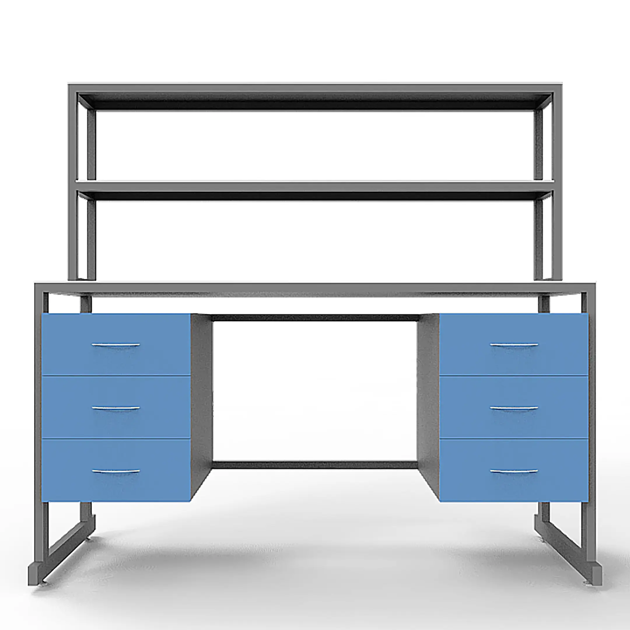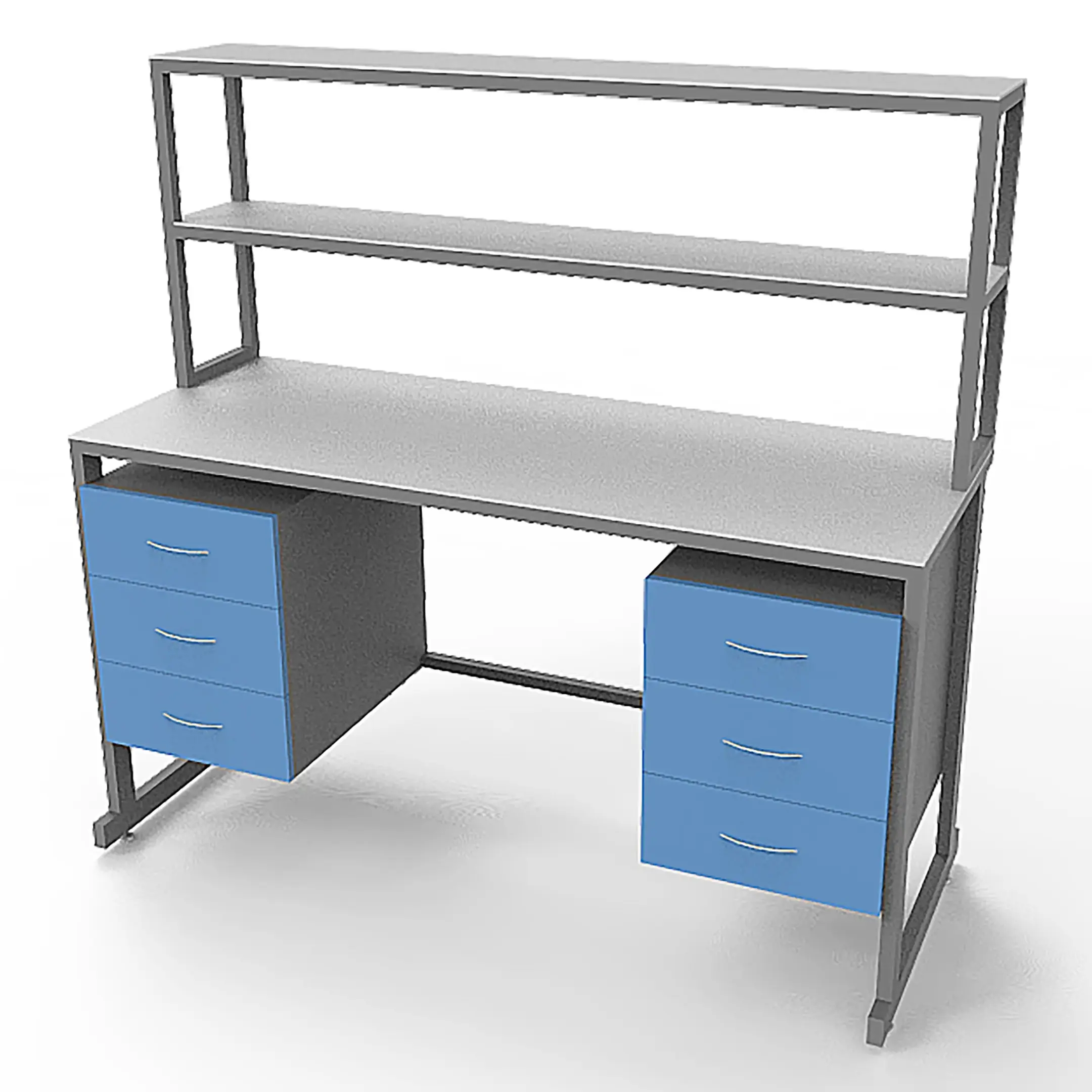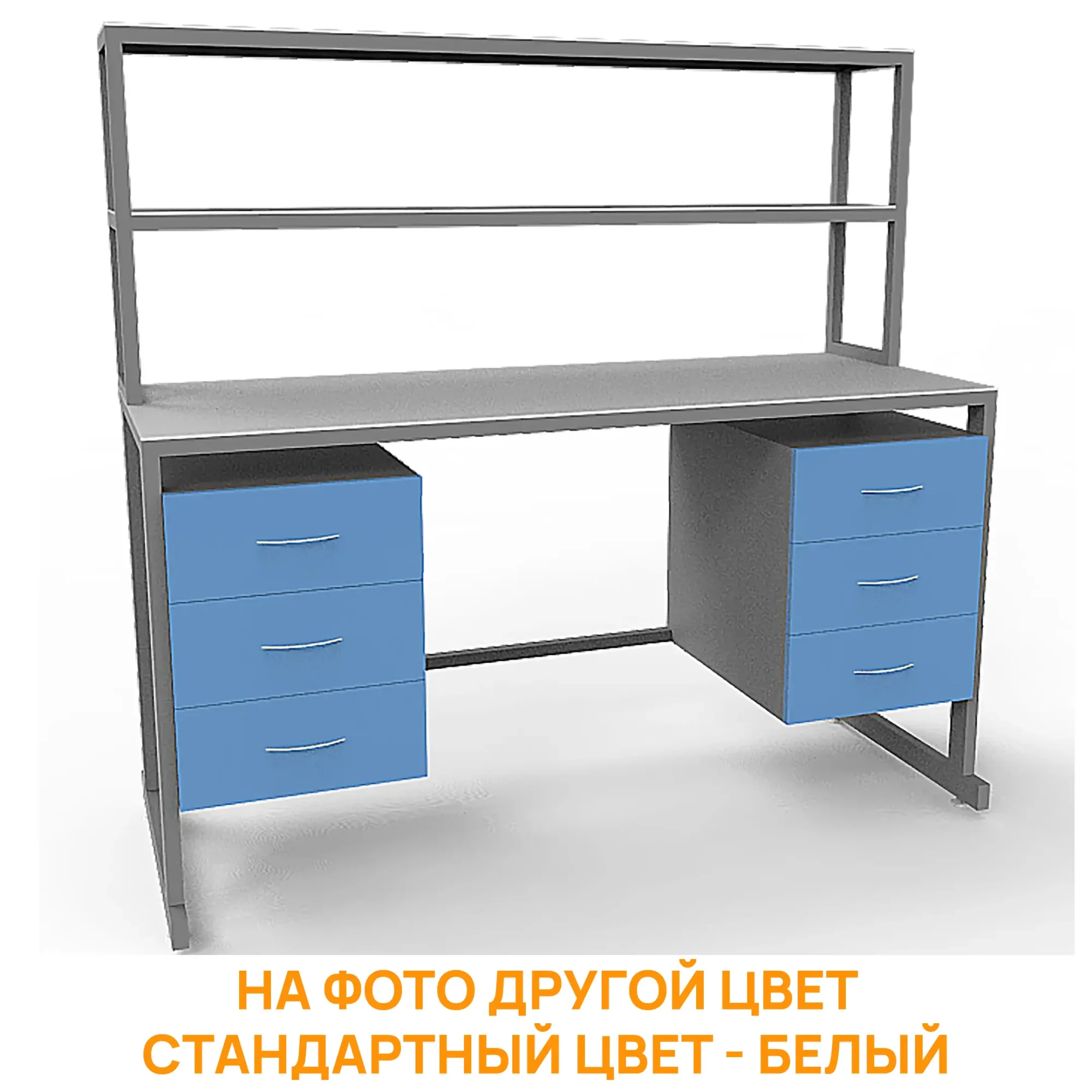 - Функциональная надстройка — две полки для дополнительного размещения оборудования, общая высота стола с надстройкой 1600 мм.