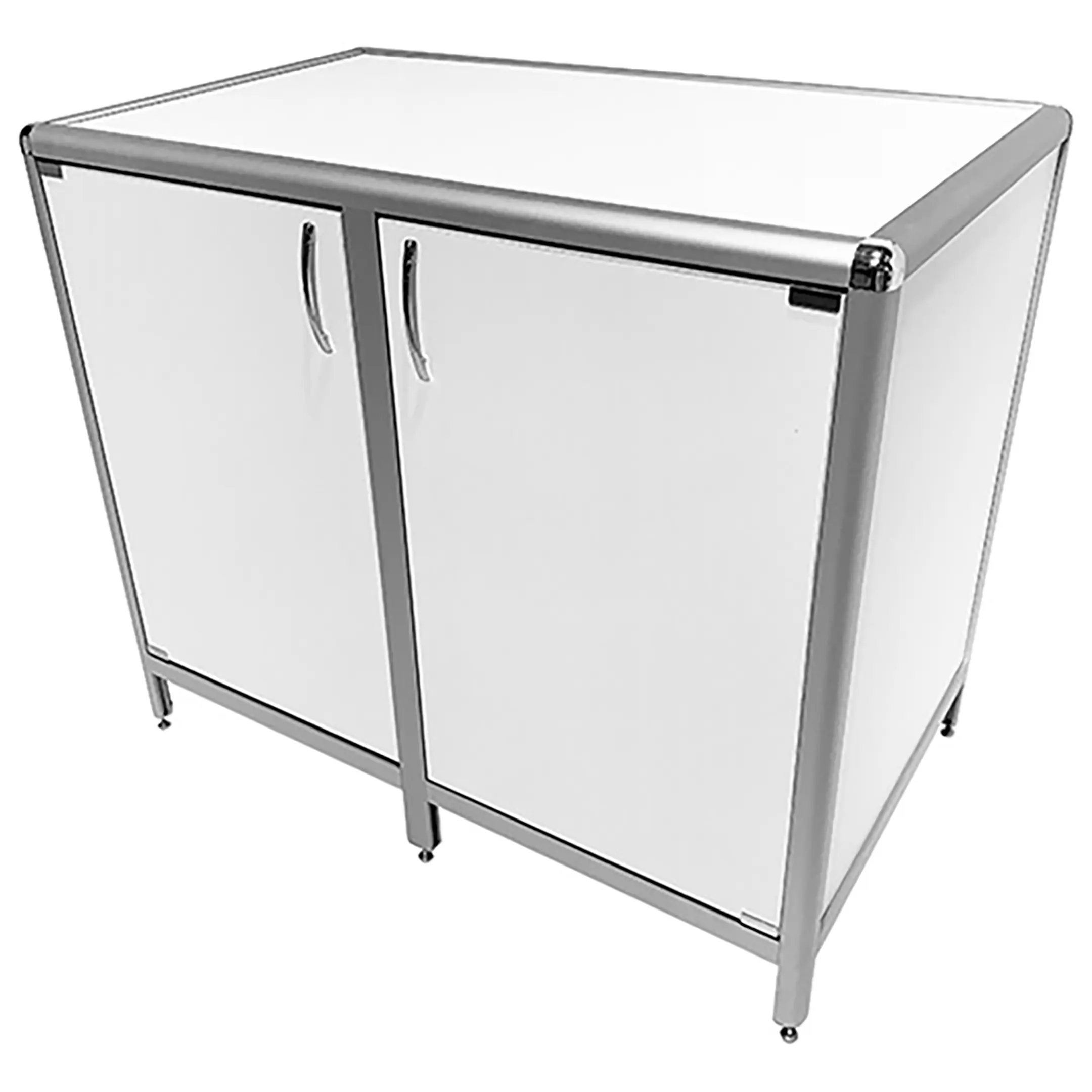Стол-тумба лабораторная MED 12.011al (белый) — это функциональное решение для хранения лабораторного инвентаря, приборов и материалов в лабораториях и медицинских учреждениях. Модель оснащена двумя тумбами с распашными дверками и полками внутри (полки 463х545 мм). Каркас выполнен из алюминиевого профиля, столешница из ЛДСП толщиной 16 мм.