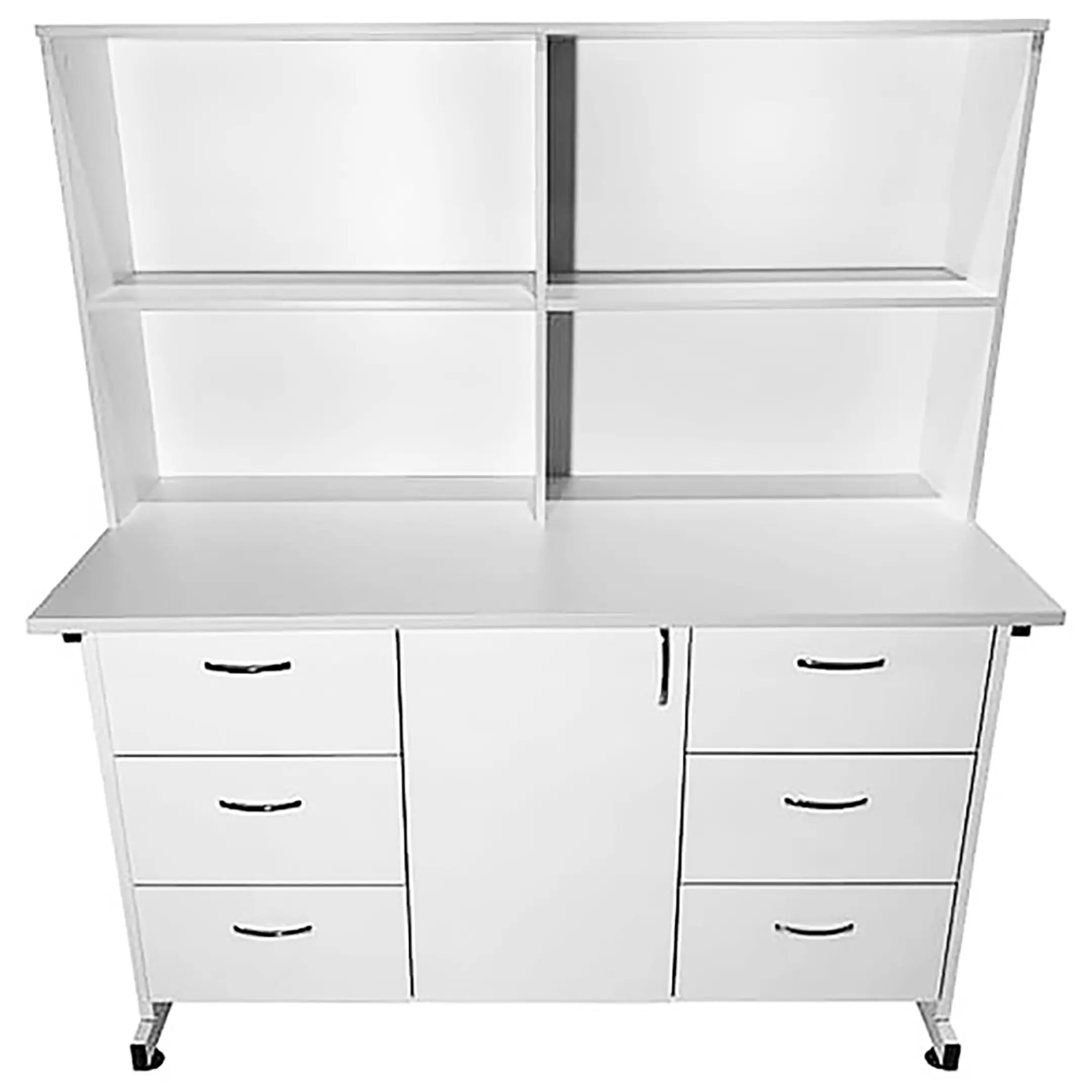 Стол-тумба лабораторная СТл 18.011 с надстройкой (белый) — это оптимальное решение для создания удобного рабочего места лаборанта, занятого химическими исследованиями и требующего эффективной системы хранения различных материалов. Модель оснащена шестью выдвижными ящиками, отделением с дверкой и полкой, а также надстройкой с четырьмя нишами. Каркас выполнен из стального профиля, столешница из ЛДСП толщиной 22 мм.
