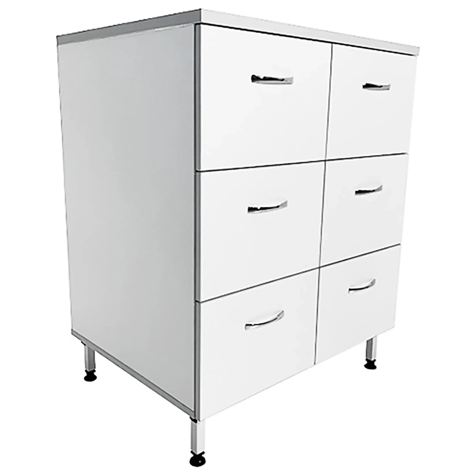 Стол-тумба лабораторная ТЛ 18.007 (белый) — это удобное и практичное решение для хранения различных предметов, инвентаря и приборов в лабораторных условиях или медицинских учреждениях. Модель оснащена тумбой с шестью выдвижными ящиками (внутренний размер 468х150х318 мм). Каркас выполнен из ЛДСП толщиной 16 мм, столешница из ЛДСП толщиной 22 мм.