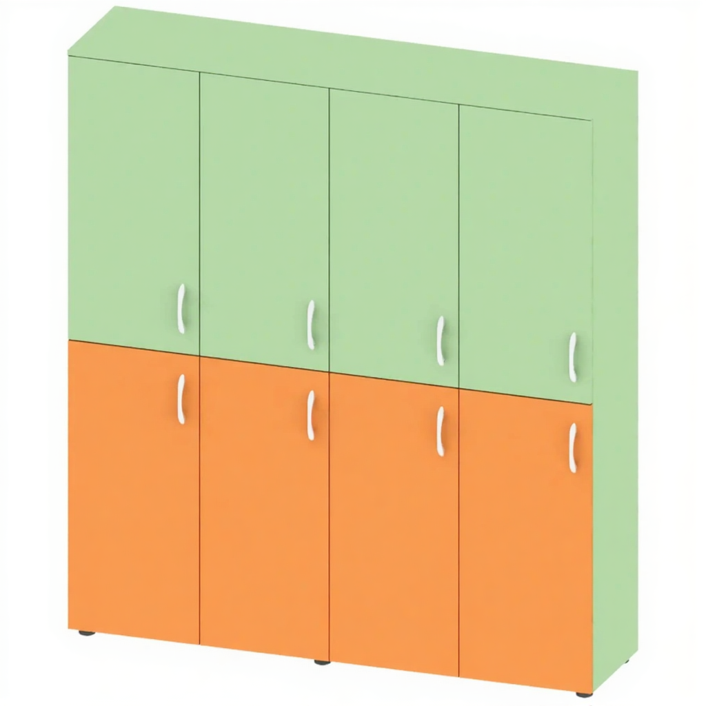 Шкаф детский для одежды двухъярусный на 4 секции МБ-ШК-14 — это функциональное решение для хранения одежды в детских садах, школах и других дошкольных и образовательных учреждениях. Модель имеет 4 секции, каждая из которых разделена по горизонтали на 2 равные ячейки с индивидуальными дверями и полками.