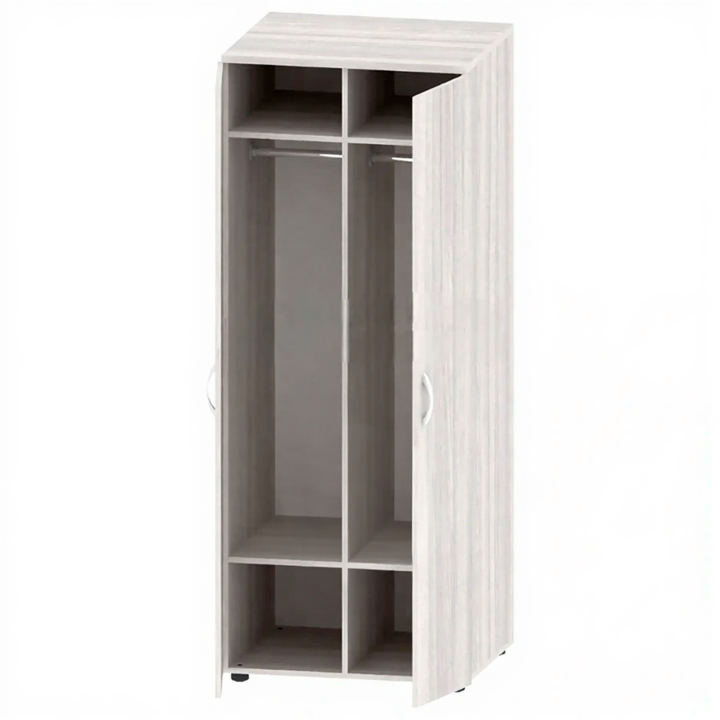 Шкаф для одежды 1800 мм ШК-АД-17-1, ясень шимо светлый — это вместительное и функциональное решение для хранения одежды в образовательных, офисных, административных и других учреждениях. Модель имеет две секции, каждая из которых оснащена верхней полкой, штангой для вешалок и нижней полкой. Изготовлена из качественной ЛДСП толщиной 16 и 22 мм с ДВП в цвет шкафа.