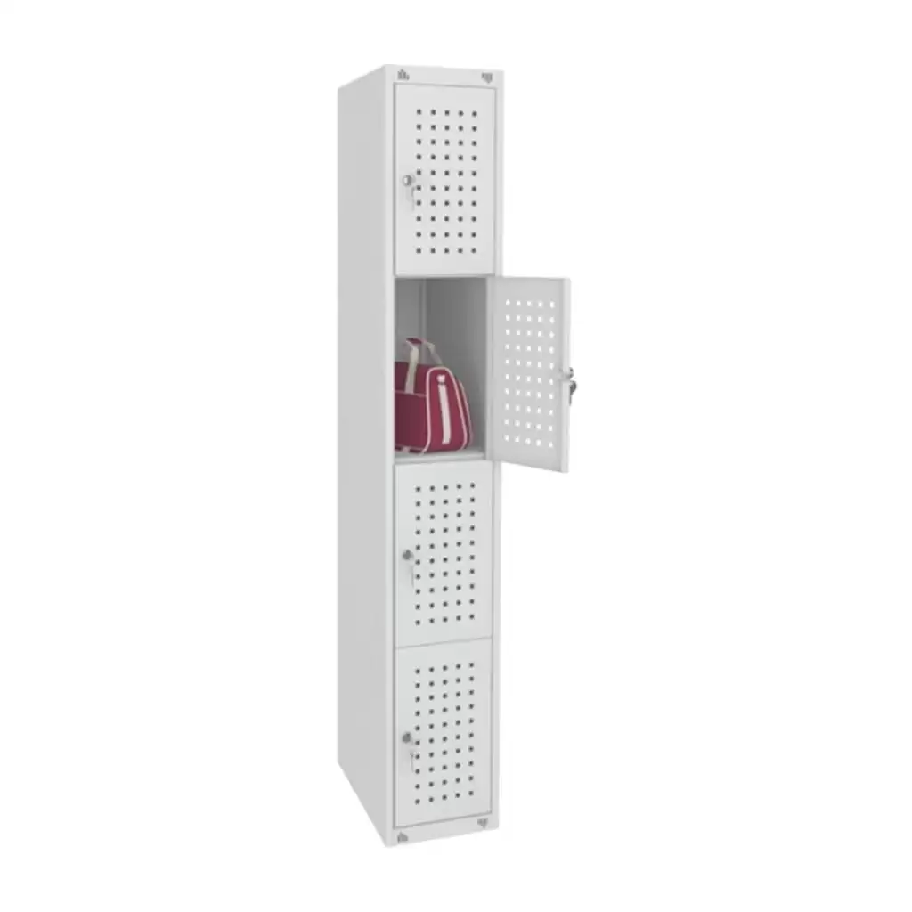 Шкаф для сумок ШМ-14 — это надежное решение для хранения вещей в магазинах, супермаркетах, школьных и спортивных раздевалках, фитнес-центрах, камерах хранения и других помещениях. Модель состоит из четырех секций, каждая из которых оборудована индивидуальным замком и вентиляционными отверстиями. Шкаф изготавливается из холоднокатаной стали и поставляется в собранном виде.