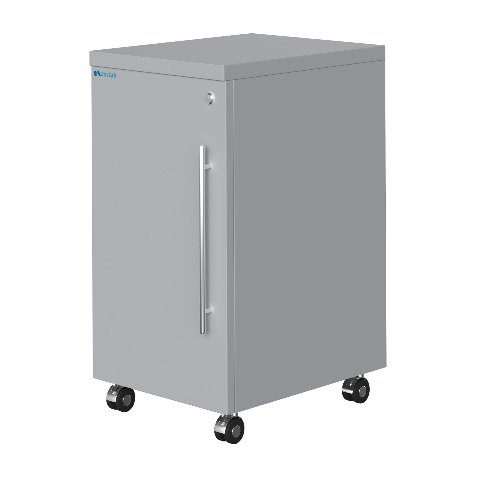 - Мобильность и компактность — колесные опоры диаметром 50 мм позволяют легко перемещать тумбу, оптимальные габариты для размещения в любом месте лаборатории.