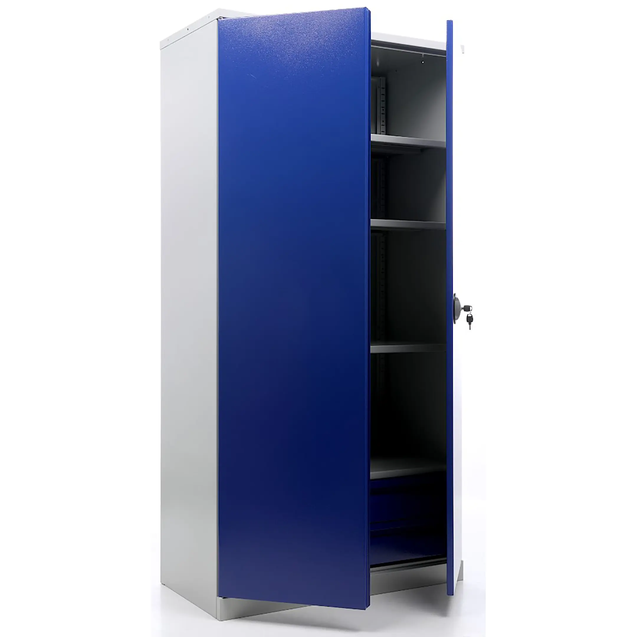 - Повышенная защита и безопасность — прочный корпус из стали повышенной толщины и усиленная конструкция дверей с надежной запорной системой (часто — центральный замок с несколькими точками запирания) обеспечивают максимальную защиту ценного инструмента от кражи и несанкционированного доступа.