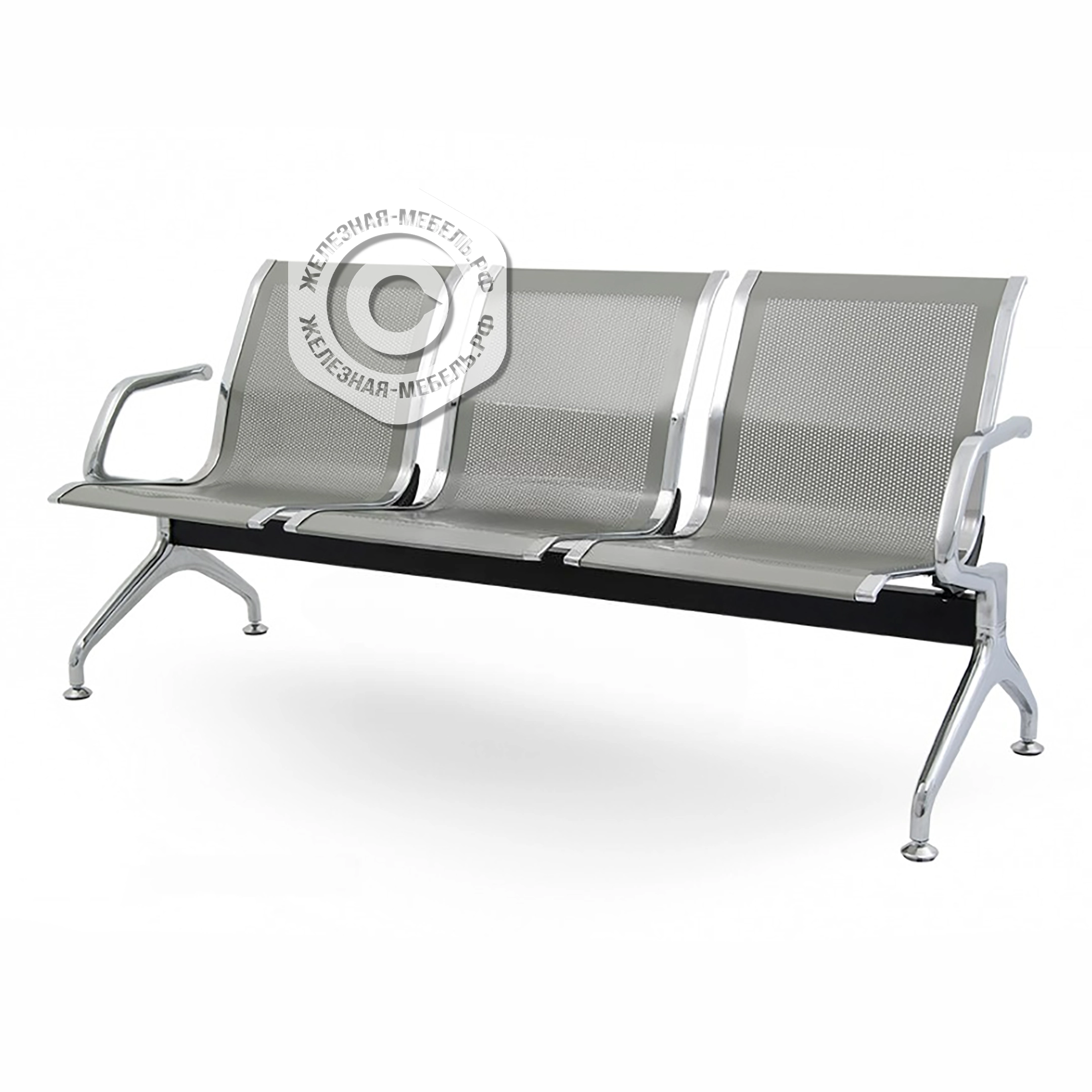 Стоимость указана за модель с покрытием металлокаркаса: балка - RAL 9005 "черный муар", перфорация - RAL 7001 "серый" и с хромированными элементами (подлокотники, опоры и окантовка сидений). Все варианты окрашивания металлических каркасов на последних фото.