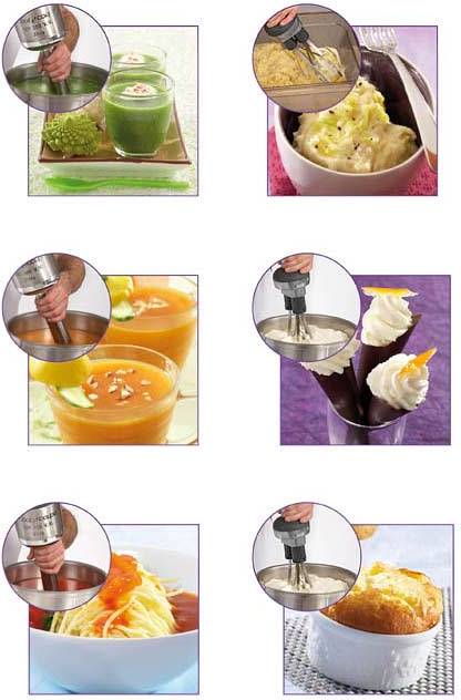 Ручной миксер ROBOT COUPE MP 450 Combi Ultra имеет автоматически регулируемую скорость. А мощные вентилируемые двигатели гарантируют эффективное и быстрое замешивание продукта. Кроме того, обороты двигателя не снижаются даже при погружении рабочей части машины в продукт. Так, функция блендера позволяет за считанные минуты выполнять все виды микширования ингредиентов, а взбивание и тщательное смешивание обеспечивает функция венчика.