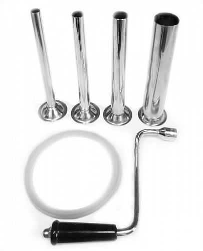 В комплекте 4 насадки из нерж. стали (диаметр: 3,8; 2,5; 1,9; 1,5см).