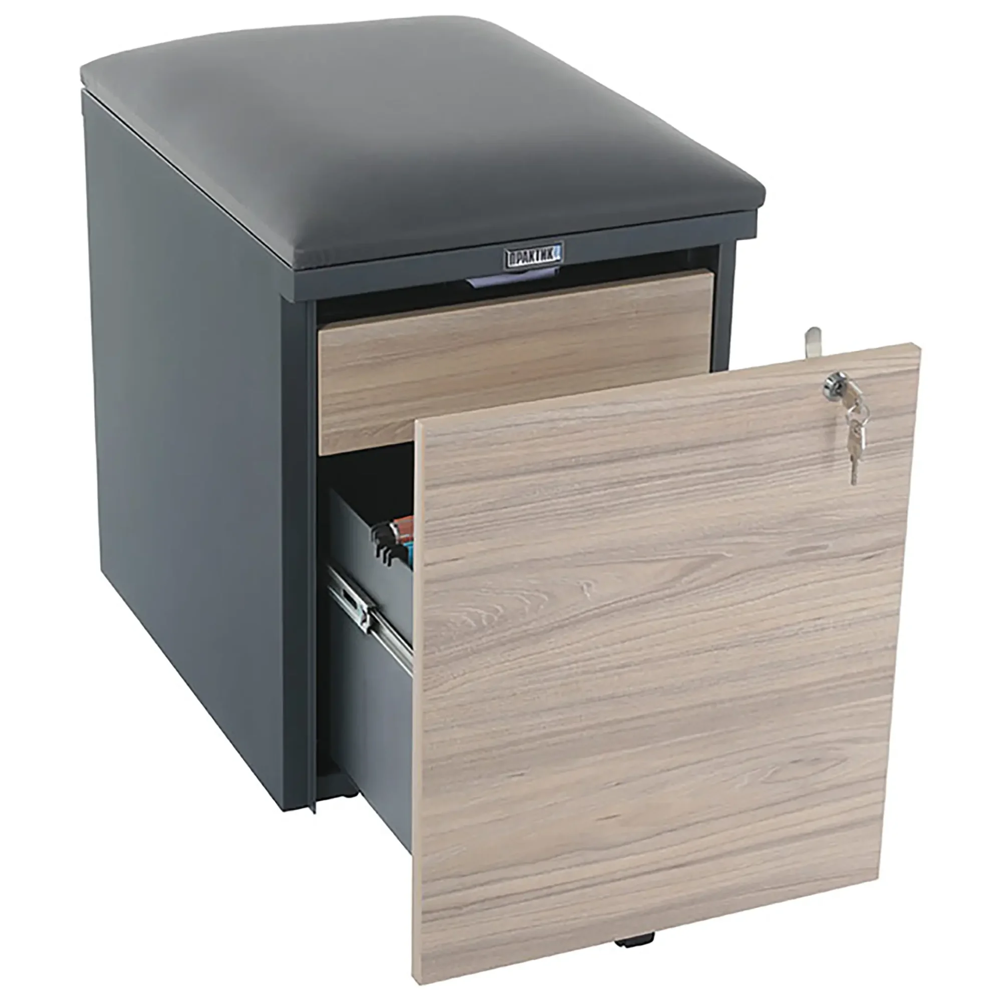Тумба офисная с пуфом Практикант, 2 ящика (антрацит/вяз) Предназначены для хранения документации и канцелярских принадлежностей. Возможно использование в качестве мобильного места для сидения.