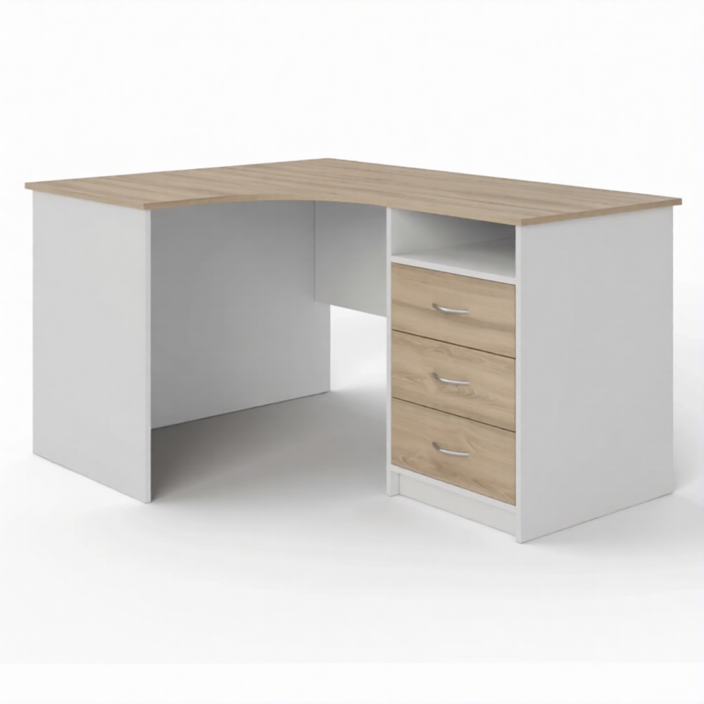 Стол рабочий угловой с тумбой СУ-1 левый (корпус ЛДСП белый, столешница ЛДСП дуб сонома)
