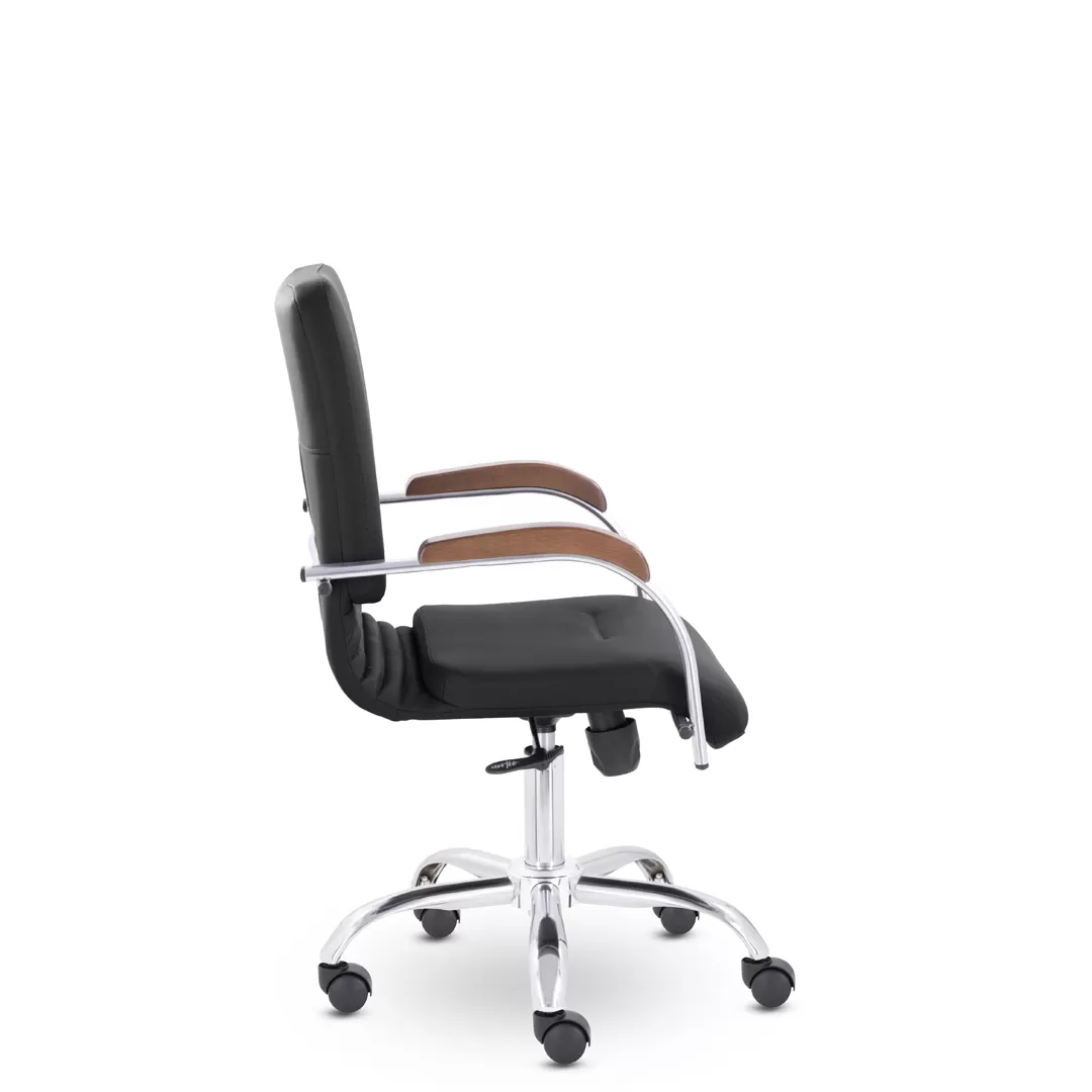 - Эргономичная посадка — спинка с поддержкой поясницы и удобное сиденье обеспечивают комфорт при длительной работе или совещаниях.