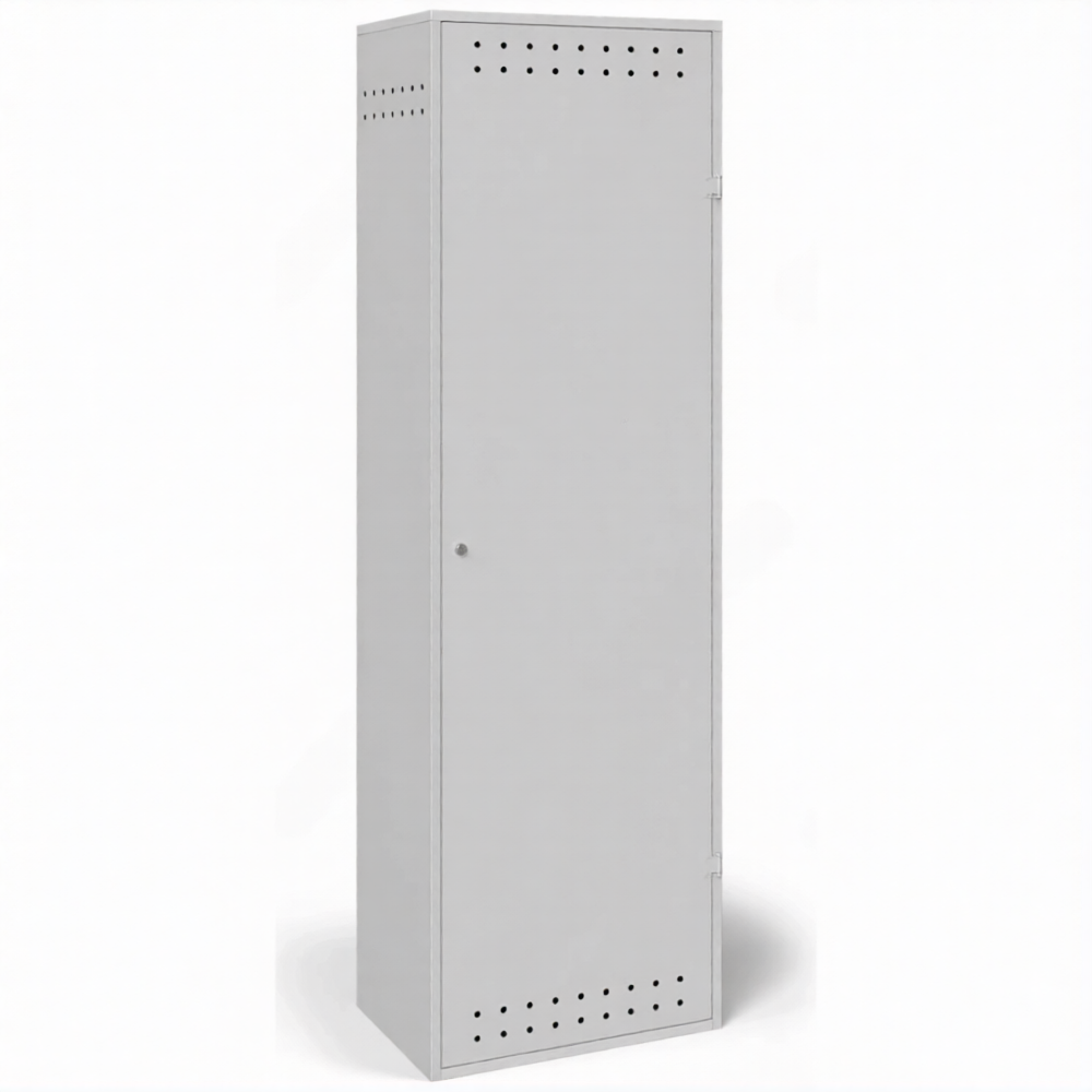 - Надежная защита от хищений и вандализма — усиленная сварная конструкция, массивные сварные петли и возможность установки серьезных запорных устройств (врезные замки, навесные замки повышенной секретности) делают этот компактный шкаф настоящим сейфом для газовых баллонов, эффективно защищающим дорогостоящее имущество даже при размещении в проходных местах.