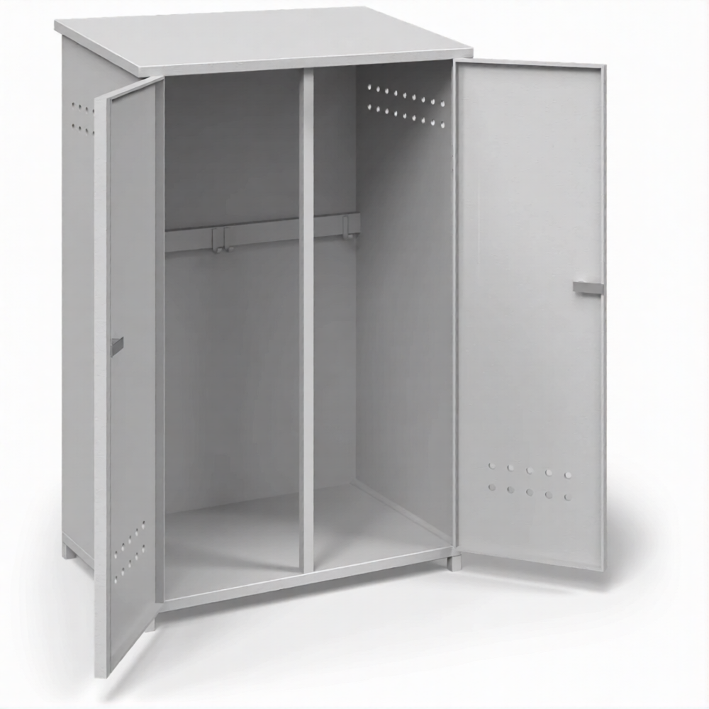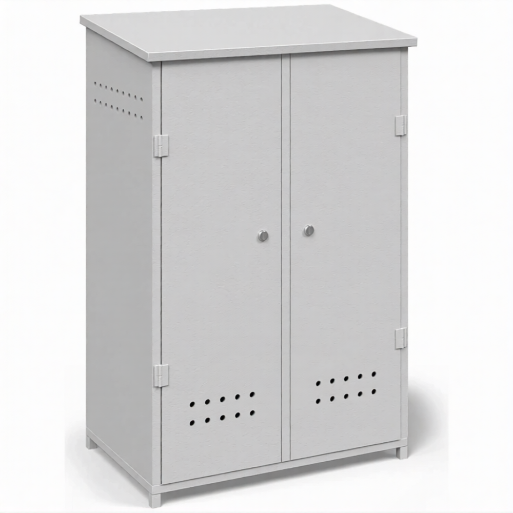 - Обеспечение высочайшего уровня пожарной безопасности — шкаф надежно изолирует два пропановых баллона от любых источников открытого огня, искр и теплового воздействия. Продуманная система вентиляции через перфорационные отверстия в нижней и верхней частях обеспечивает постоянный приток воздуха и безопасный отвод тяжелого газа в случае утечки, предотвращая создание взрывоопасной концентрации.