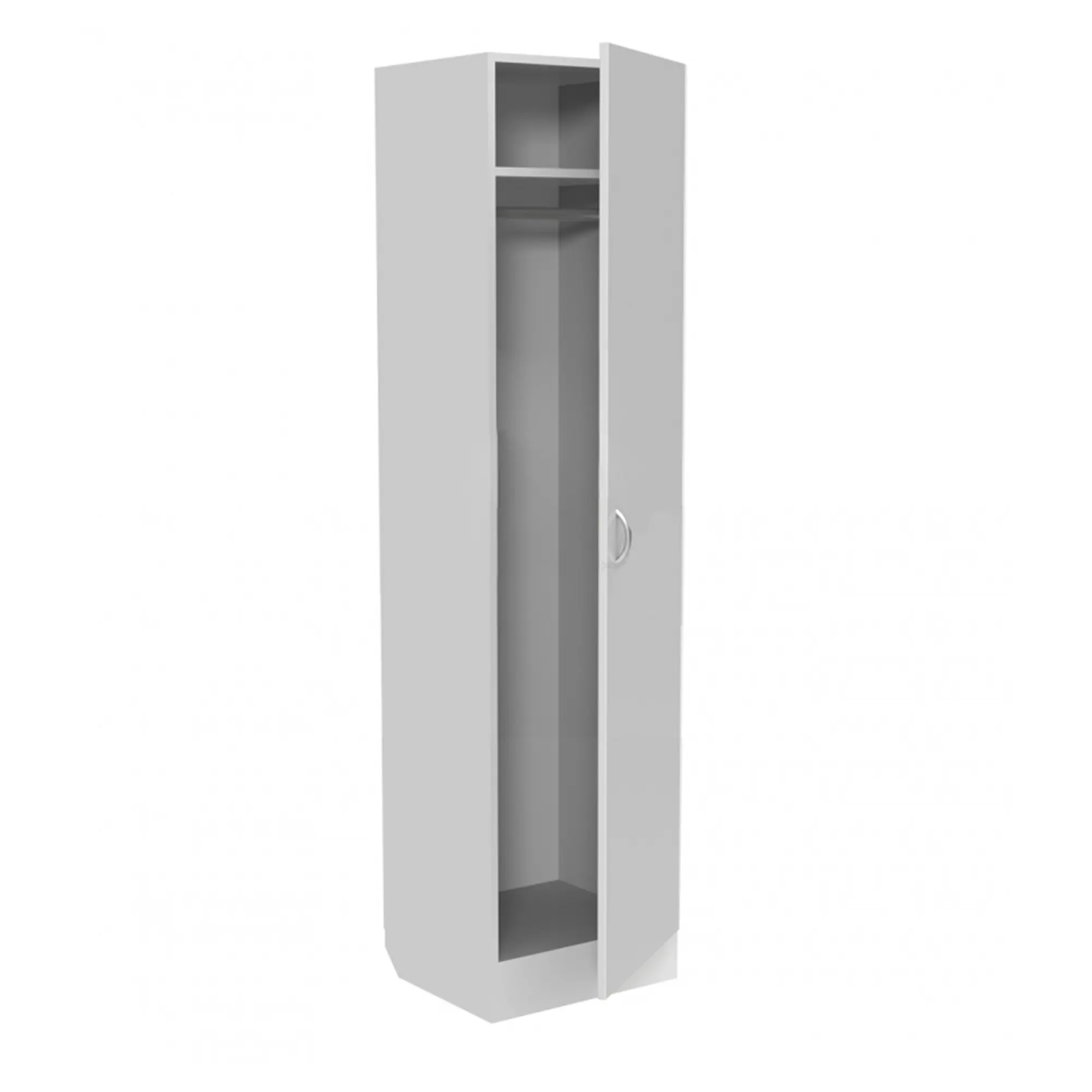 - конструкция одностворчатая с одной дверью, полкой для головных уборов и перекладиной для вешалок;