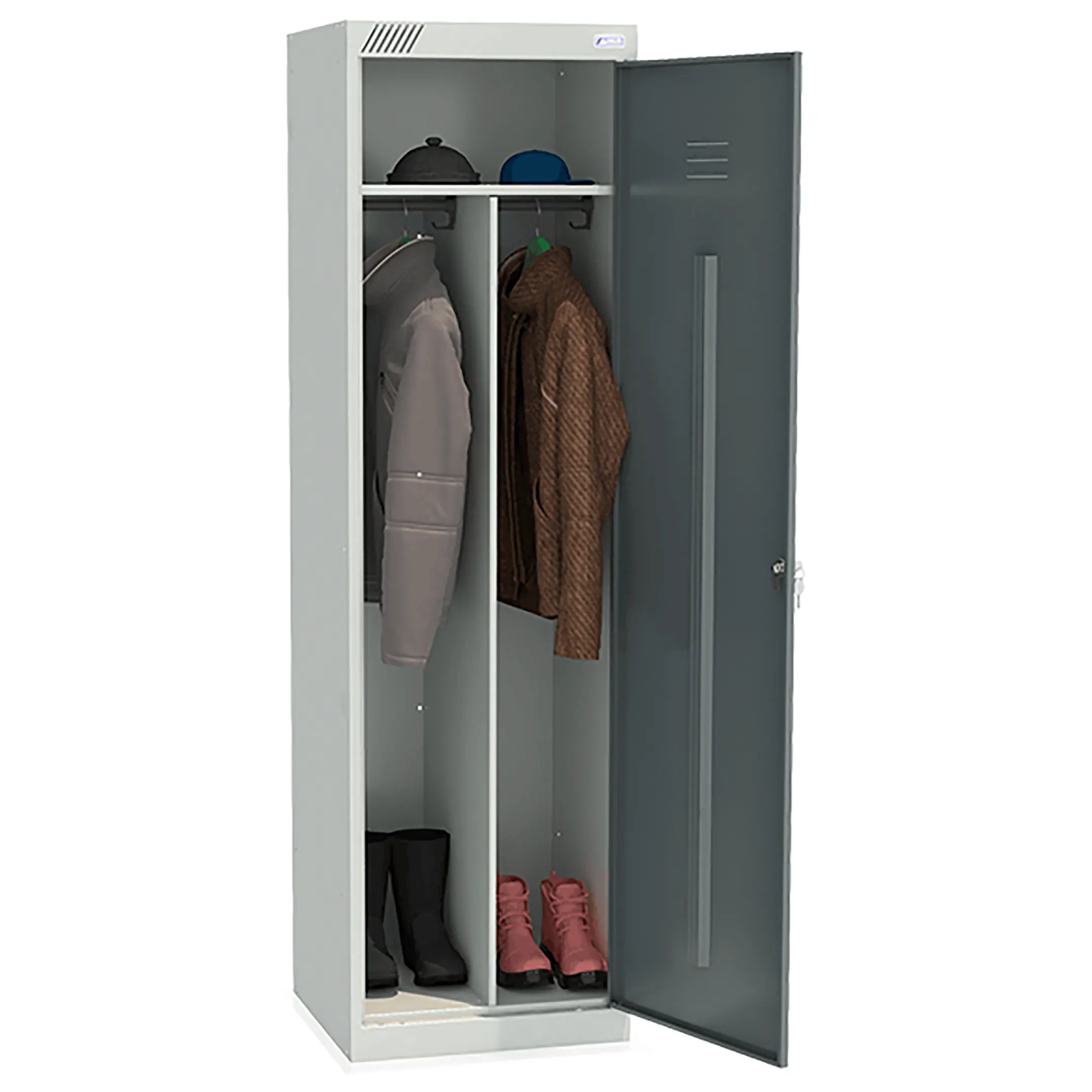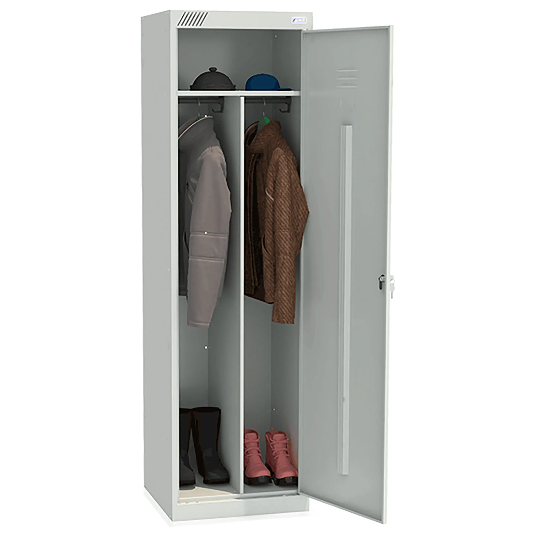Металлический шкаф для одежды ШРЭК-21-530 предназначен для хранения сменной одежды в офисных, производственных и спортивных помещениях.