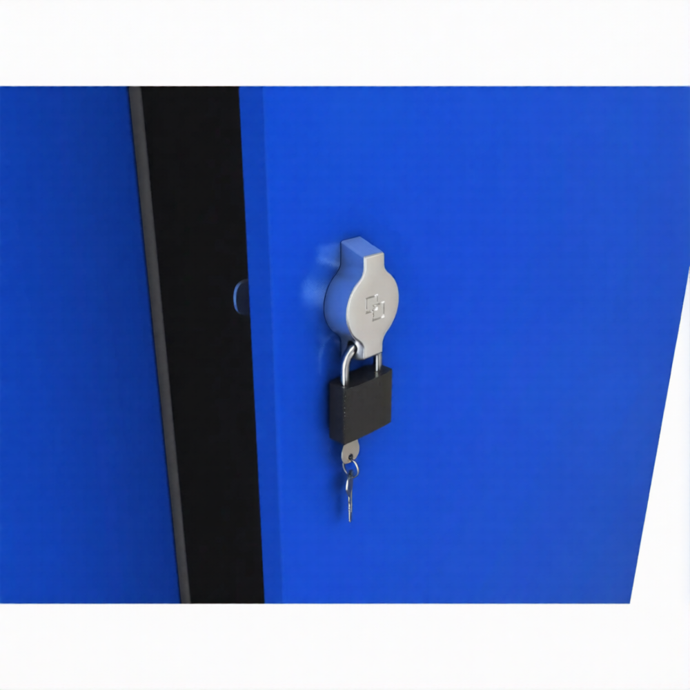 • Замок может быть двух типов: 1 - ключевой цилиндрический со стальной поворотной ручкой (стандартная комплектация); 2 - поворотный механизм под навесной замок (не входит в комплект поставки)