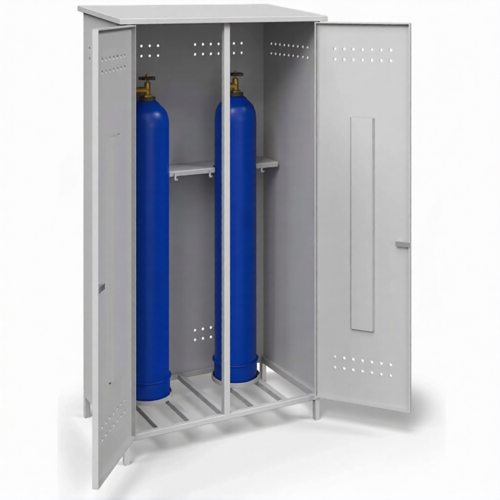 Шкаф металлический для газовых баллонов ШГБК-02 — это классическое, надежное и экономичное решение для безопасного хранения и защиты двух газовых баллонов на производственных участках, в мастерских, сервисных центрах и на объектах с ограниченным пространством. Модель представляет собой стандартный стальной защитный шкаф серии «02», где обозначение четко определяет его вместимость на два стандартных баллона. Конструкция разработана для соблюдения правил пожарной и промышленной безопасности, обеспечивая эффективную защиту емкостей с газом под давлением от внешних воздействий, несанкционированного доступа и создавая организованное, безопасное место хранения по доступной цене.