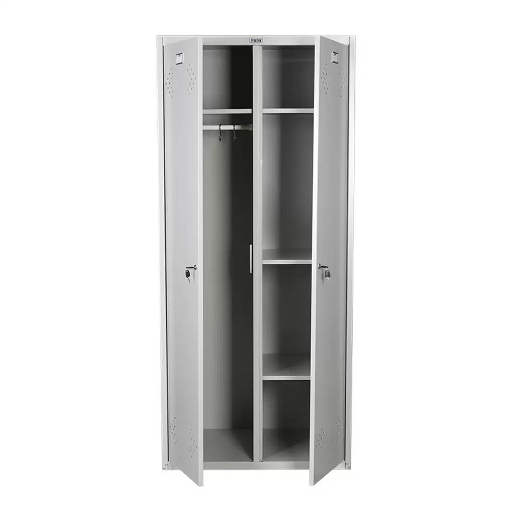 • две секции, две полки, две перекладины для плечиков, четыре крючка, 2 замка повышенной секретности;